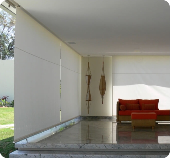 El sistema de los toldos LiBali Balcony te brinda una caída vertical libre con la capacidad de incluir un ángulo, gracias a la extensión de sus brazos siendo ideal para balcones y terrazas ubicadas en edificios. Este toldo permite una mayor circulación de aire gracias al espacio creado por este ángulo.